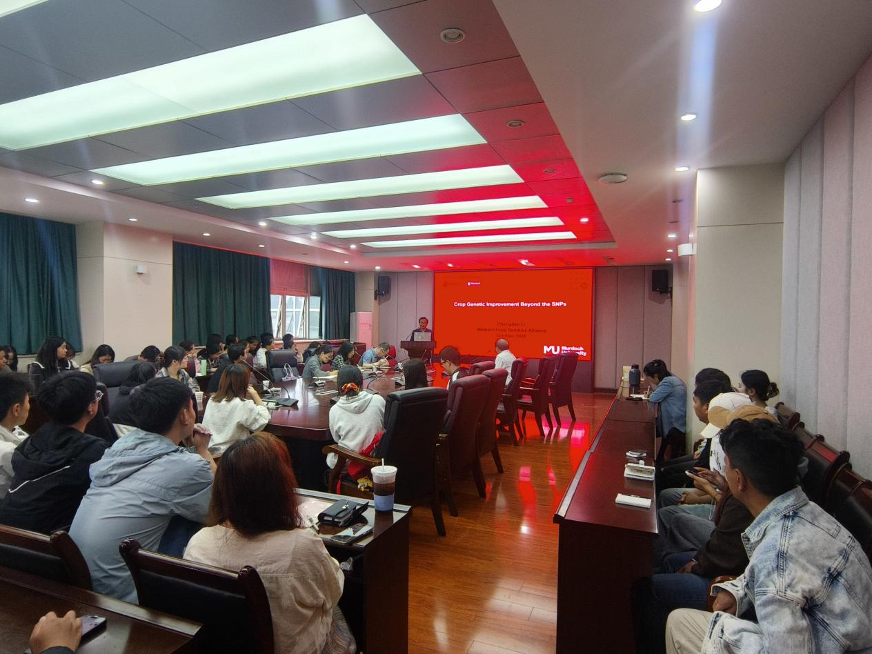 近日,应我院冯宗云教授邀请,澳大利亚技术科学与工程院院士、西澳农业与食品部首席科学家、莫道克大学教授、国际作物基因组学领域领军学李承道教授莅临我校,作了题为“crop genetic improvement beyond the snps”的学术报告。李承道教授围绕啤酒大麦产量和麦芽品质提升的基因组学基础,系统梳理了其团队在该领域多年的研究成果。从基因组学角度深入剖析了大麦产量性状及麦芽品质性状形成的分子机理与遗传改良,重点介绍了大麦种质资源创新、基因组精细解析、泛基因组构建等方面的最新进展。育成的包括baudin在内的10余个国际啤酒大麦主栽品种,构建了优质啤酒大麦高效育种体系,不仅体现了理论研究的深度,也彰显了育种实践中的重大突破,为作物遗传改良提供了重要借鉴。他领导的团队破解了啤酒大麦育种的两大世界难题,一是产酒量和产酒效率同步提升,二是抗穗发芽和高麦芽品质有机结合。其深厚的学术造诣与开阔的科研视野,为在座师生带来了深刻启发,也为未来双方进一步合作奠定了坚实基础。