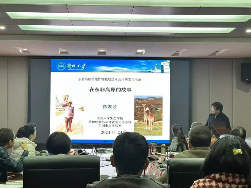 报告会上,熊友才教授分别以“旱地农业生态系统”和“东非高原旱地作物栽培技术合作研发与示范”为主题,从旱地农业生态学基本法则、旱地农业生态系统管理面临的挑战、旱地作物栽培技术合作研发与示范等几方面介绍了如何运用生态学与栽培学理论解决农学中的实际问题。通过分享自己的求学经历和依托“一带一路”将研究工作拓展到沿线国家和地区的工作体会和科研感受,特别针对青年学生怎样认识生物与农业,青年教师如何处理教学与科研关系、怎样找准研究方向等问题,与师生们进行了深入交流。
