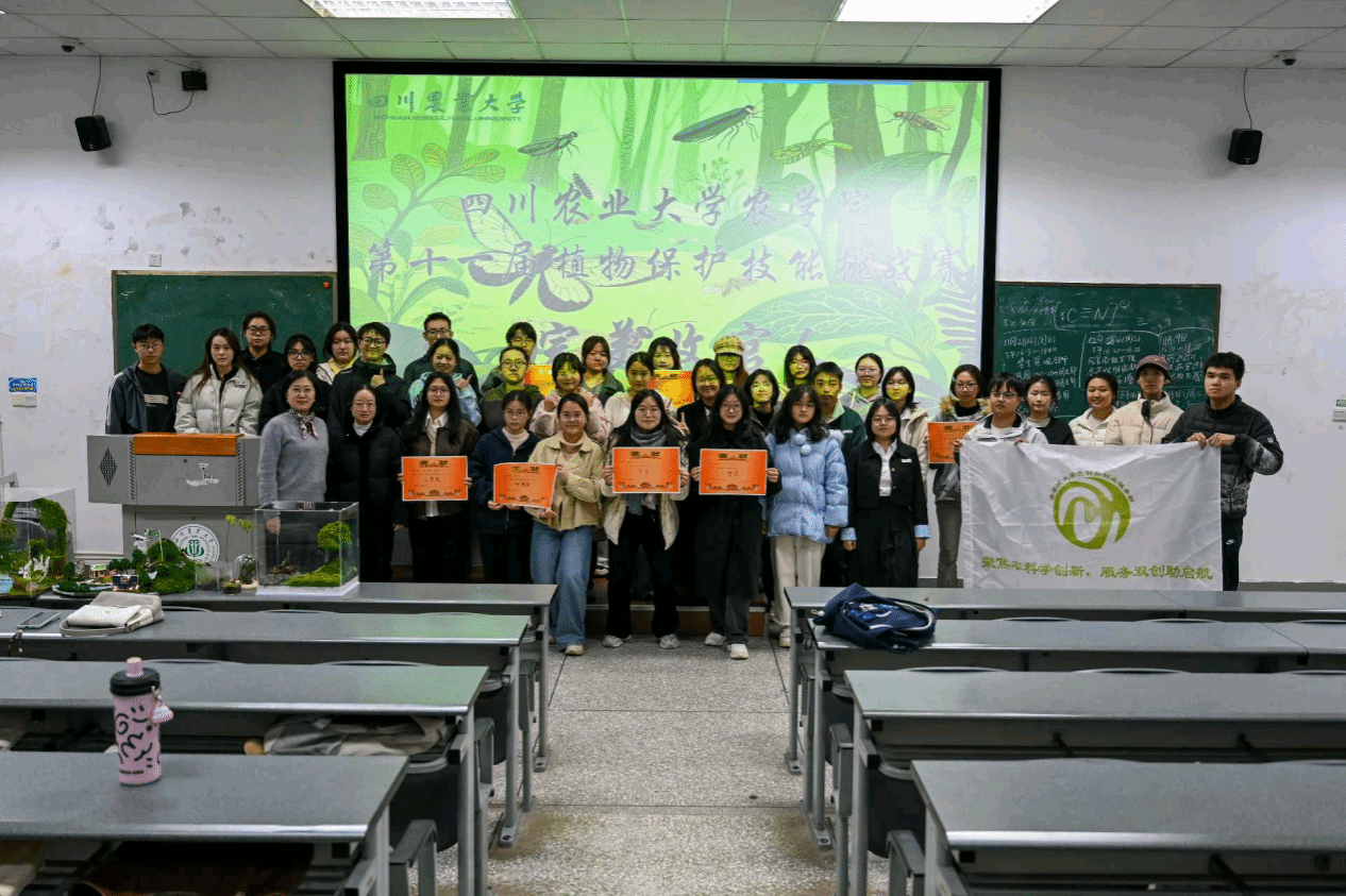 答辩环节中,选手们应对提问从容自信、逻辑清晰,展现出良好的综合素养。经综合评审,旺旺团队凭借出色的创意设计与精细制作荣获一等奖,另设有二等奖1项、三等奖2项、优秀奖4项。在最后的问答环节中,有趣的问题将气氛推向高潮。主持人以快问快答形式,围绕植物病虫害知识展开“智慧碰撞”,同学们通过举手抢答激烈竞逐。这场别开生面的“知识接龙”,既高效巩固了课堂理论,又点燃了全员参与的热情,完美实现了“以问促学、知行合一”的目标。