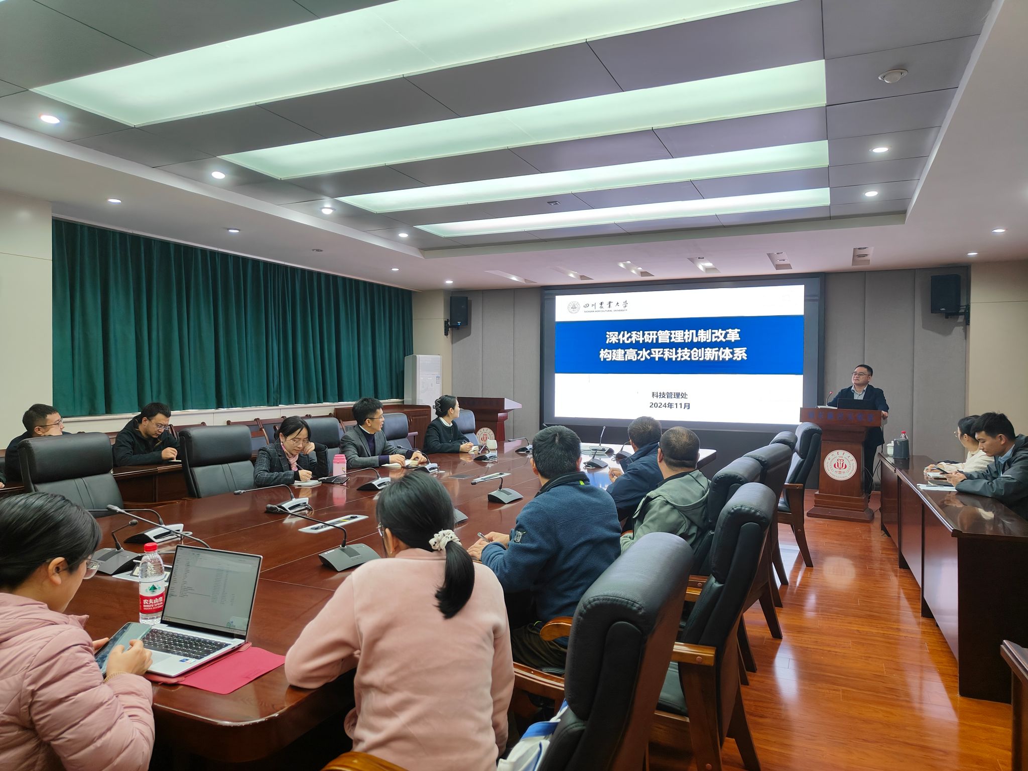 首先,田处长以《深化科研管理机制改革构建高水平科技创新体系》为主题,从科技创新政策汇总、学校科技工作现状、机制体制改革举措等三个方面做了深入浅出的讲解,重点围绕优化科技管理制度性设计、加快科技创新组织方式改革、深化科技评价体系改革、统筹推进教育科技人才一体改革等学校体制机制改革举措做了详细介绍。他强调,下一步科技管理处将在学校领导、指导下制定具体的工作举措,全面落实学校《关于贯彻落实党的二十届三中全会精神推进教育科技人才体制机制一体改革的意见》,以修订完善《双支计划》为抓手,推动学校科技创新体系持续完善。随后,针对国家自然科学基金项目申报这项科研重点工作,田处长全面分析了农学院近5年国家自然科学基金项目申报与资助情况,并对学院基金申报提出了意见建议。