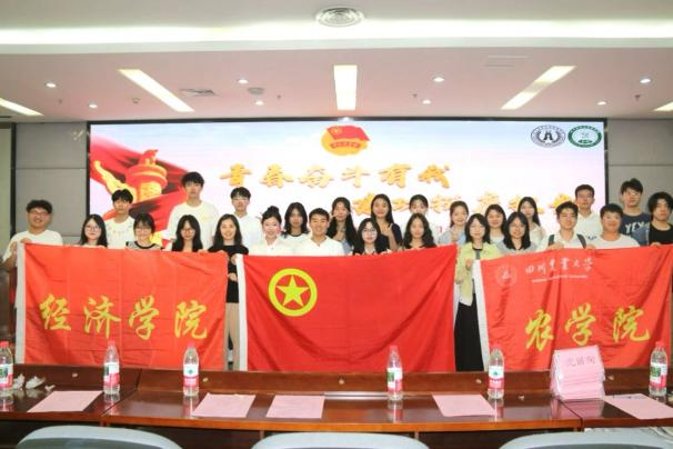 为深入学习宣传贯彻习近平总书记给谢依特小学戍边支教西部计划志愿者的回信精神,引导青年学子坚定理想信念、锤炼实践能力,以实际行动践行时代使命与担当。5月27日经济学院与农学院联合举办“青春奋斗有我,建功挺膺担当”示范性班团活动。经济学院党委办公室副主任、团委副书记朱玉老师、农学院党委办公室副主任兼团委副书记沈丽淘老师、经济学院研究生兼职辅导员王梦晗老师、经济学院学生团委兼职副书记伍轩雨、农学院学生会执行主席王奎、校青马班第十一期学员唐鸿林、五四红旗团支部标兵代表李婧瑶、科创乡村人才振兴调研团负责人郭果等嘉宾出席,与180余名团员和青年共赴这场青春盛会。