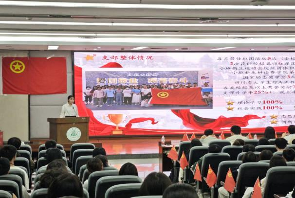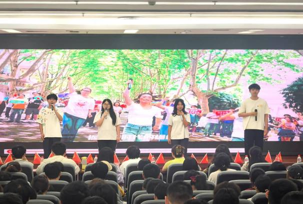 活动伊始,全体同学起立齐唱团歌。歌声激昂,旋律振奋,这不仅是青春的誓言,更是团员青年砥砺前行的号角。随后,校青马班第十一期学员唐鸿林以“青年风采与时代使命”为主题,深入解读习近平总书记给谢依特小学戍边支教西部计划志愿者的回信精神;同时,西部计划工作者们以视频的方式,结合自己的亲身经历,真诚而深刻地分享了他们的支教收获与感悟,激励团员青年用青春丈量祖国大地,用奉献诠释家国情怀。