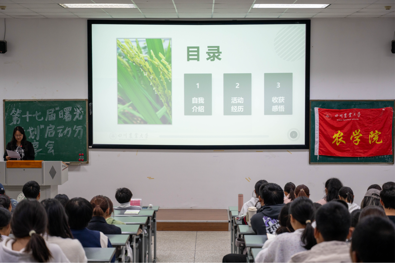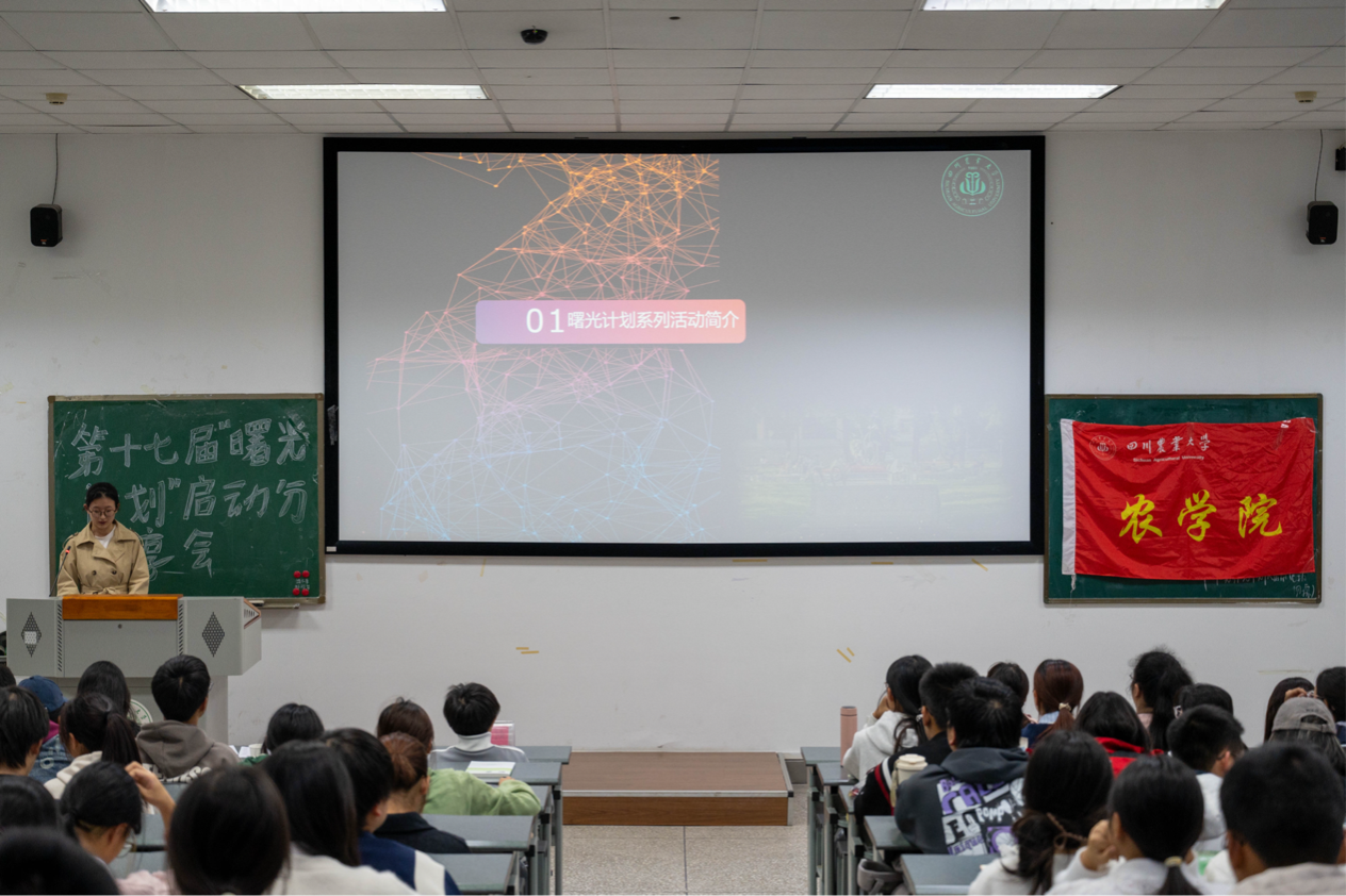 为持续推进学风建设,营造积极向上的学习氛围,10月21日下午,农学院第十七期“曙光计划”启动分享会在成都校区4-a303顺利举行。农学院团委老师刘琦、学生会主席团成员及各年级学生代表参与会议。本次会议由学生会主席团成员华春妹主持。