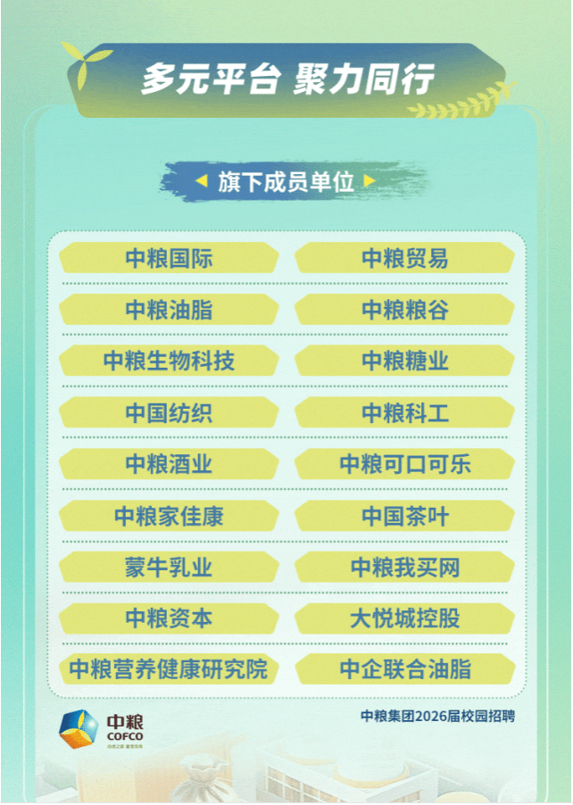 详情点击:以青春之名 守护大国粮安 | 中粮集团2026届校园招聘正式启动!